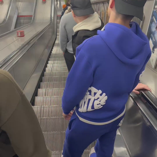 - 3D-style “Love The Hustle” print on hoodie and pants